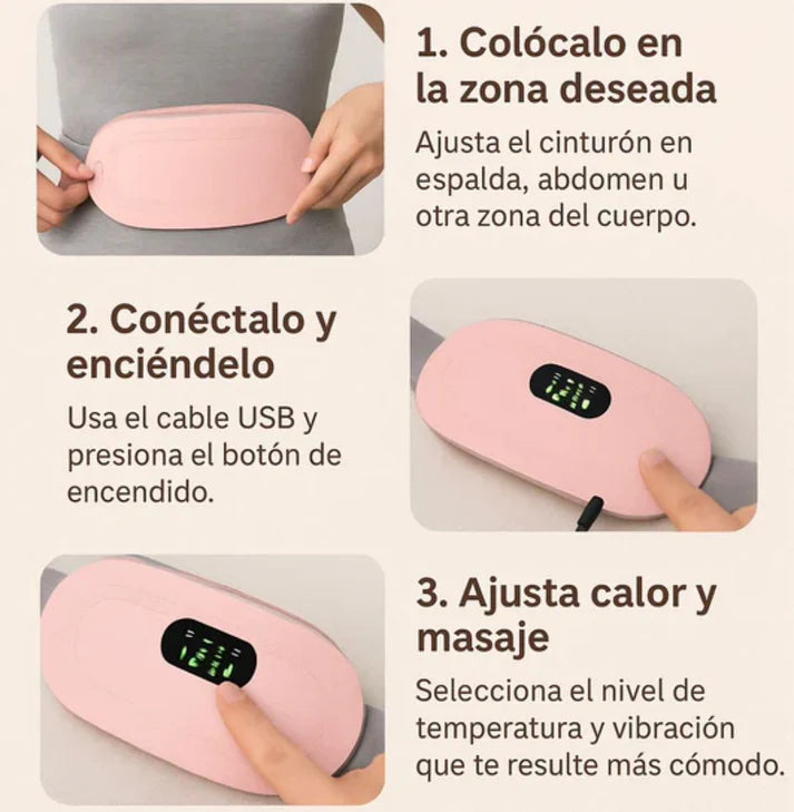 Con nuestro cinturón menstrual térmico recargable con masaje, puedes aliviar el dolor natural y cómodamente — sin medicamentos. ¡Compra ahora y siente el bienestar en minutos!